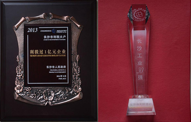 公司榮獲2013年度“長沙工業三十強”、“利稅過億元企業”等榮譽