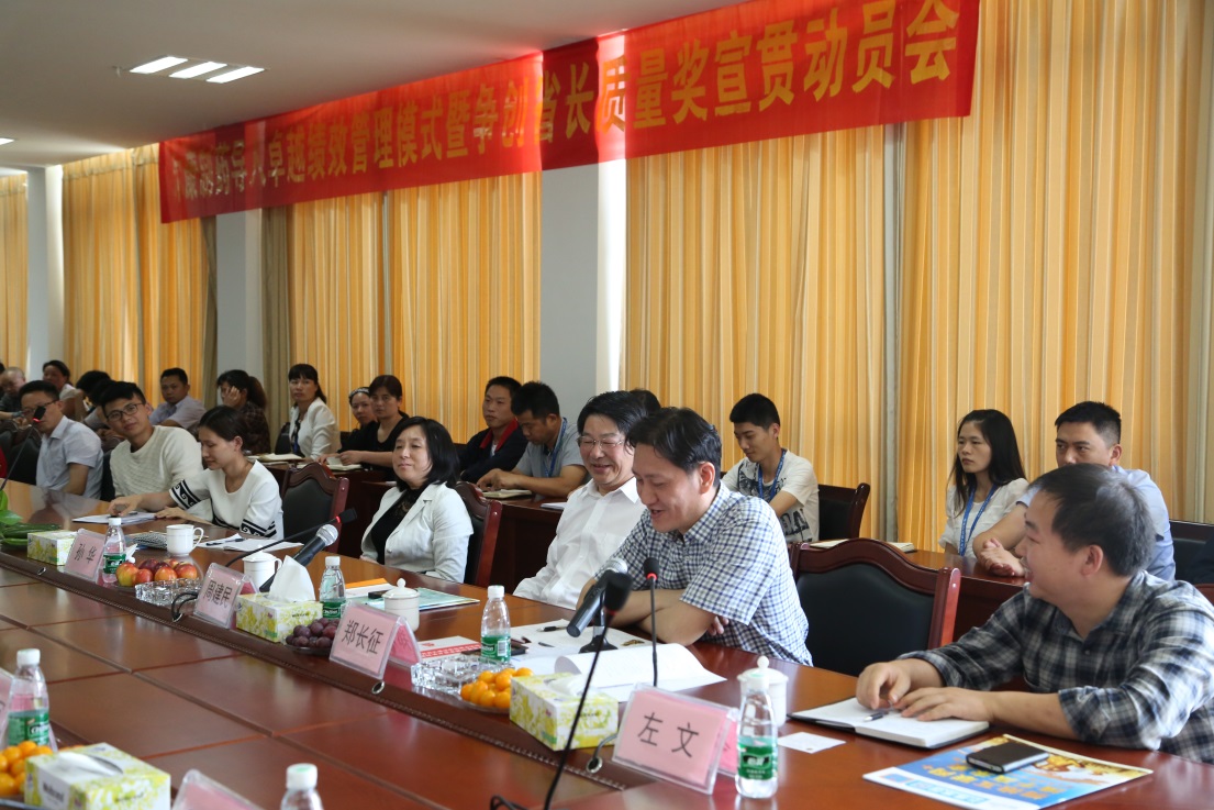 5月12日,爾康制藥導入卓越績效模式暨爭創湖南省省長質量獎宣貫動員大會在公司三樓會議室召開。湖南省質量技術評審中心高級顧問周建民、省質監局質量管理處副處長鄭長征、省質量技術評審中心主任左文、省質量技術評審中心副主任孫華等領導出席會議并講話。爾康制藥董事長帥放文和全體中層以上管理人員參加本次宣貫動員大會。
