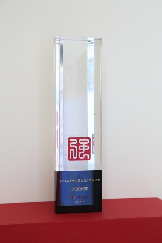 日前,中國上市公司“金牛獎”頒獎典禮在北京隆重舉行,現場揭曉2014年度上市公司金牛獎10大榜單,爾康制藥獲評“2014年度金牛最佳創業成長公司”。
