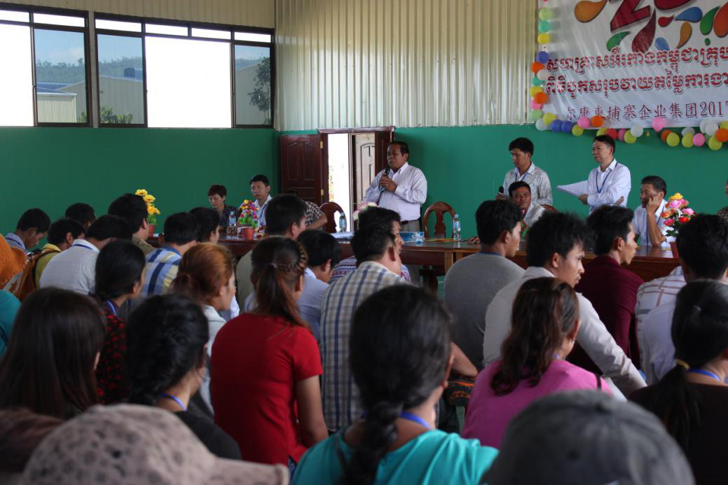 活動共分為兩個部分。第一部分為柬埔寨優秀員工表彰大會。在表彰大會環節,爾康柬埔寨企業集團副總經理楊建平代表爾康總部向柬埔寨員工致新年賀詞,他表示,公司在柬埔寨投資建廠四年以來,投資了4個項目,組建了4個公司,聘請的中柬員工近500人,這些成績的取得,離不開柬埔寨各級政府的支持和幫助,同樣也離不開每一位柬埔寨員工的辛勤勞動。在表彰大會上,共有46名柬籍員工被評為優秀員工,他們既有愛崗敬業、吃苦耐勞的老員工,又有銳意進取、充滿活力的后起之秀;既有開拓創新、技術過硬的專業人員,又有在平凡崗位上默默付出的一線員工。雖然崗位不同,職責有別,但他們都在用自己的實際行動詮釋著對工作的無限熱忱。此次表彰大會旨在號召全體員工向優秀員工學習,鼓勵優秀員工在新的一年繼續起模范作用,帶領員工一起為公司做出新的貢獻!