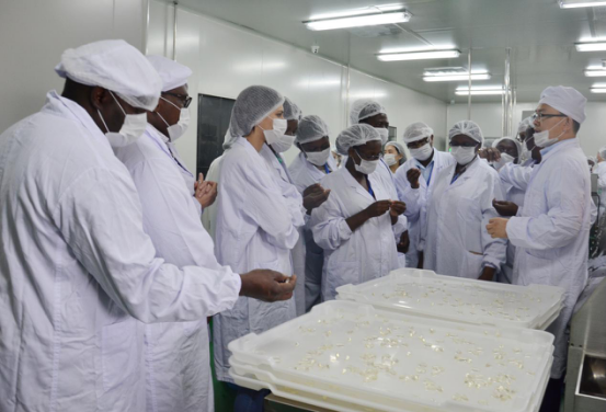 培訓(xùn)班學(xué)員參觀了爾康制藥的總部辦公大樓以及部分生產(chǎn)車間,在技術(shù)人員的指導(dǎo)下,學(xué)習(xí)了爾康制藥的相關(guān)生產(chǎn)檢驗設(shè)備的操作流程,詳細詢問和了解公司很多產(chǎn)品,特別是淀粉膠囊的相關(guān)知識。肯尼亞學(xué)員看到制作淀粉膠囊的木薯圖片后,興奮地說到:“我們肯尼亞也有這種木薯,肯尼亞物產(chǎn)豐富,氣候適宜,國家渴望發(fā)展,希望爾康制藥以后也到我們國家去投資生產(chǎn)。”