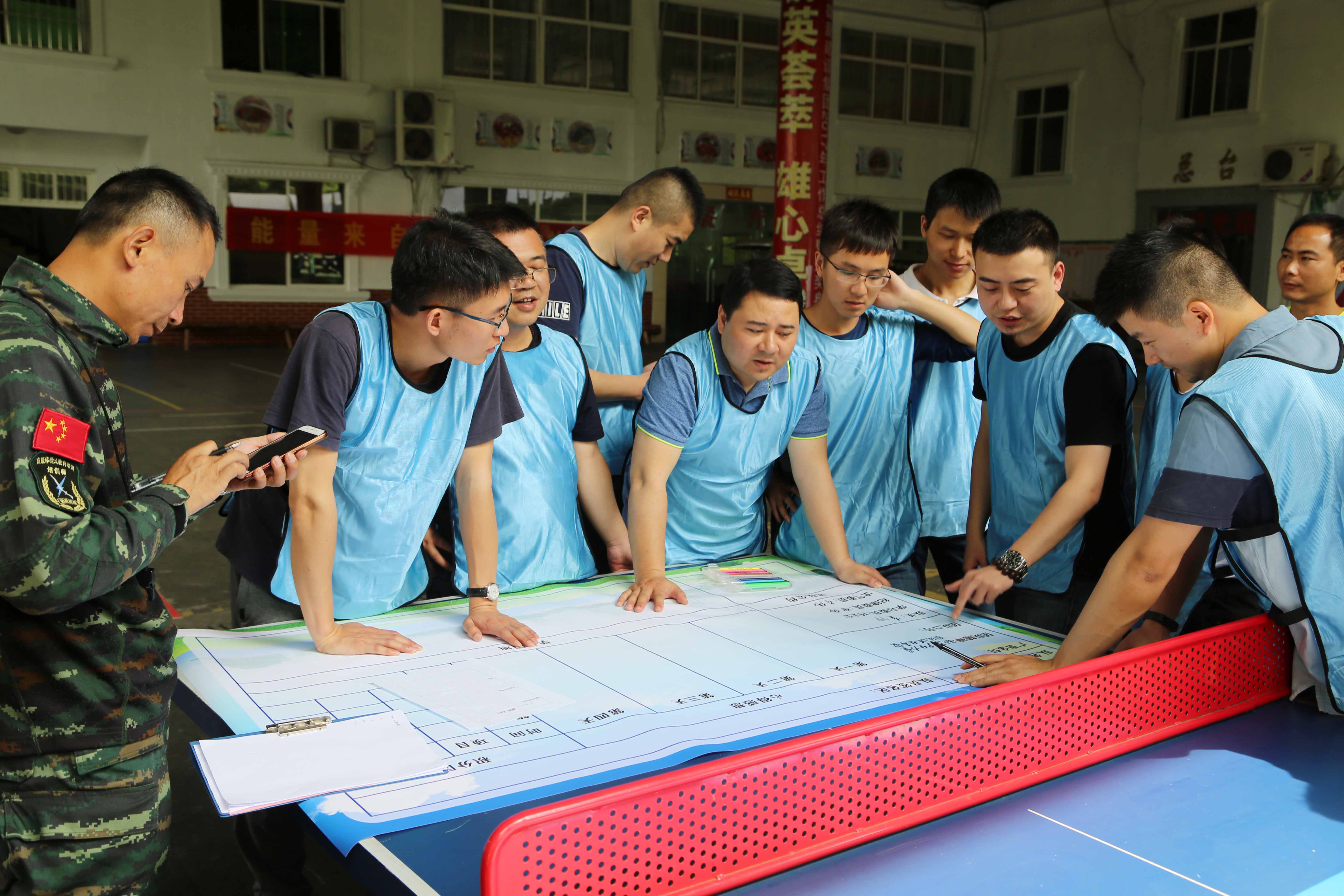 模擬沙盤項目中團隊學員認真討論總結