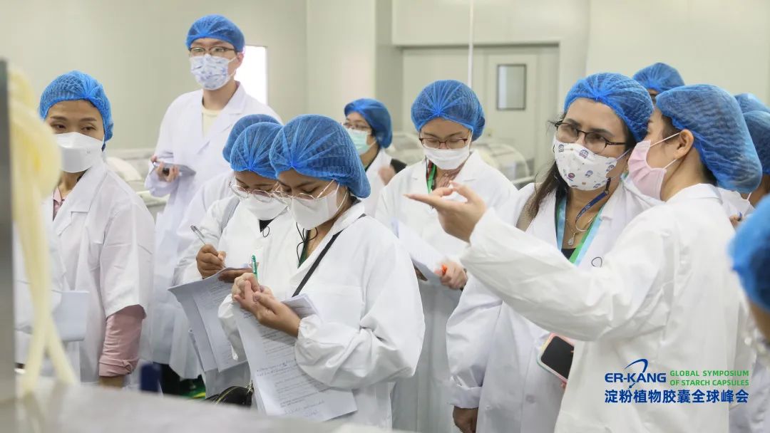 為期四天的峰會中,爾康制藥技術人員不僅為來賓就淀粉植物膠囊關鍵制造工藝、生產設備改造等核心技術進行了講解,還重點演示了爾康淀粉膠囊板塊最新研發產品——N-VGEL(咀嚼軟膠囊用淀粉)的化膠投料、抽真空、下膠、混懸物料壓丸等標準化生產過程,賓客們親臨現場,近距離觀摩了解淀粉植物膠囊的制造工藝。