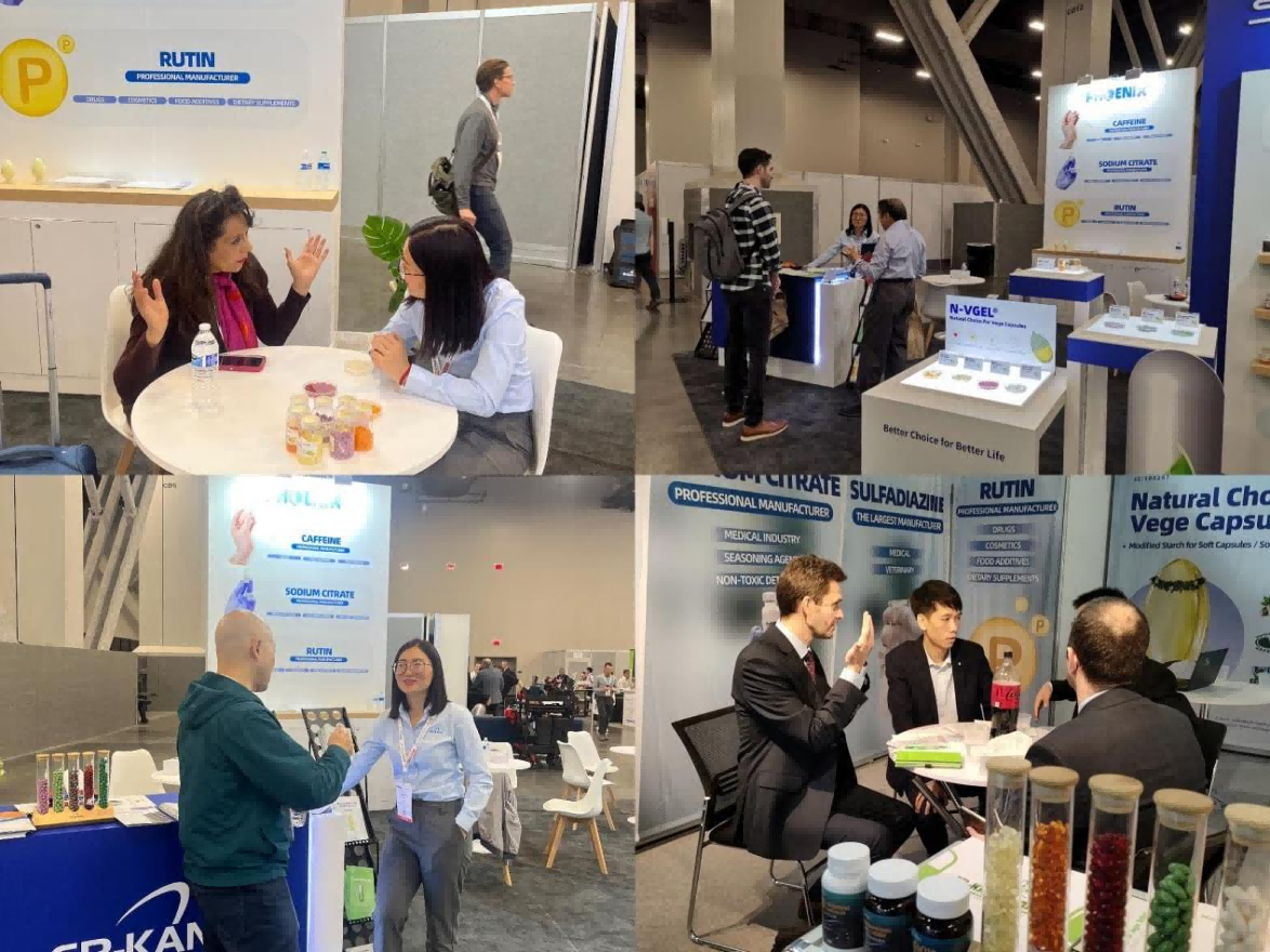 產品不僅獲“湖南省科技進步一等獎”,還申請了國內外101項專利,并獲美國NSF、素食協會認證、猶太教Kosher認證、穆斯林Halal認證等多項國際權威認證,從而以其高品質逐步打開國際市場,被全球近40個國家的100余品種采用,逐漸成為享譽海內外的出色品牌。在Supplyside West展會上,淀粉植物膠囊相關產品吸引了許多客戶前來展臺參觀交流。